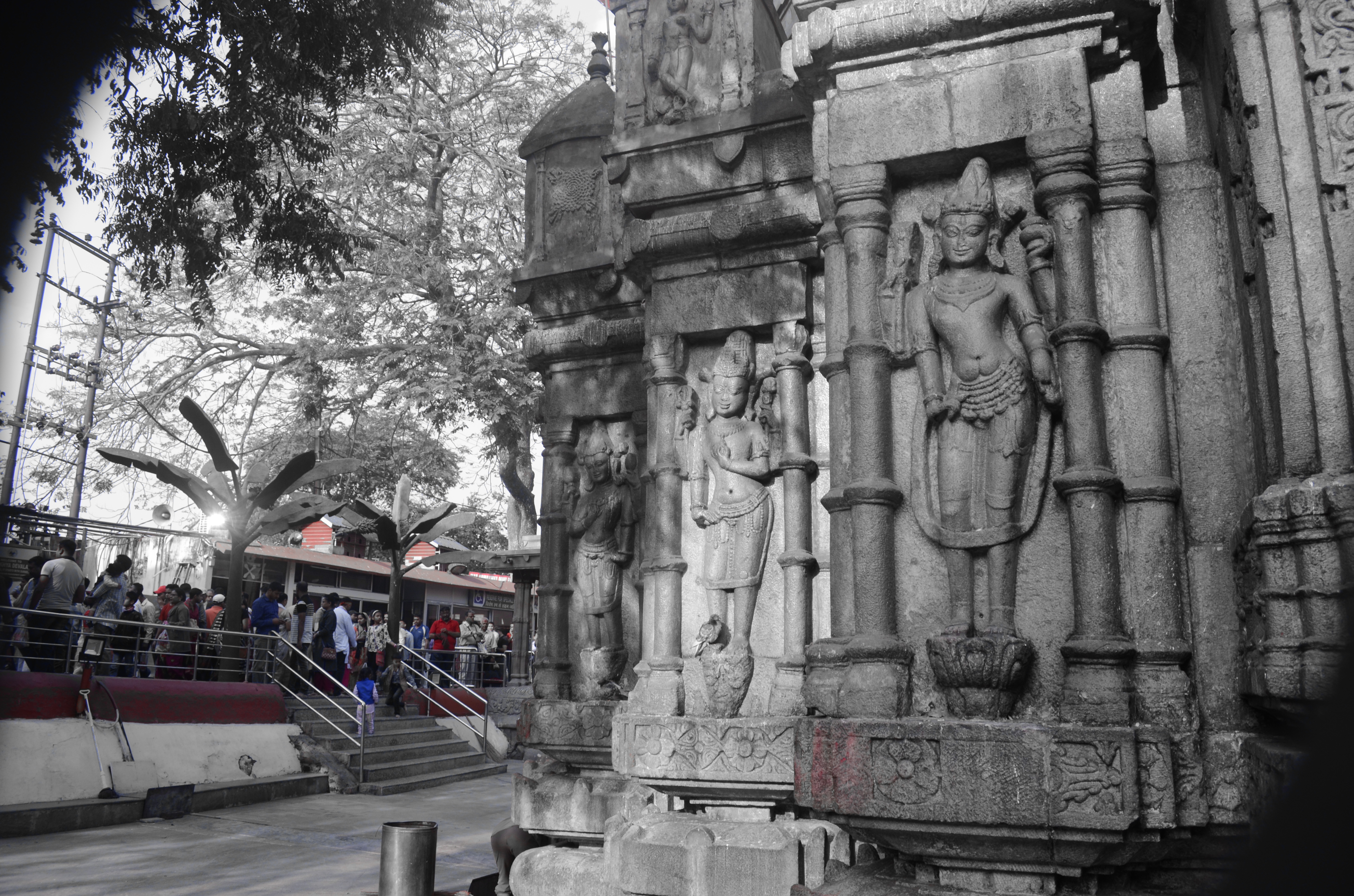 The Kamakhya Temple (Assamese: কামাখ্যা দেৱালয়) also known as Kamrup-Kamakhya temple, Kamakhya Devalaya, is a Hindu temple dedicated to the mother goddessKamakhya. It is one of the oldest of the 51 Shakti Pithas. Situated on the Nilachal Hill in western part of Guwahati city in Assam, India, it is the main temple in a complex of individual temples dedicated to the ten Mahavidyas of Saktism : Kali, Tara, Sodashi, Bhuvaneshwari, Bhairavi, Chhinnamasta, Dhumavati, Bagalamukhi, Matangi and Kamalatmika. Among these, Tripurasundari, Matangi and Kamala reside inside the main temple whereas the other seven reside in individual temples. It is an important pilgrimage destination for Hindus and especially for Tantric worshipers.